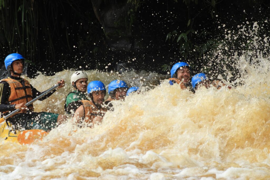 O rafting rola nas corredeiras do Rio Jacaré Pepira, um dos melhores do país pra esse tipo de aventura. No bote inflável, vão até sete pessoas, remando juntas e encarando refluxos, quedas e muita água na cara. Diversão na medida certa — com emoção do começo ao fim.